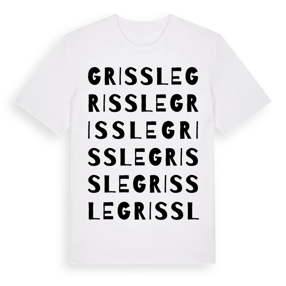 Grissle ordlek t-shirt är inspirerad av Grissle i Västmanlands län, Sverige. Tröjan är designad för dig som har en speciell koppling till platsen – oavsett om du bor här, har rötterna här eller bara älskar Grissle.