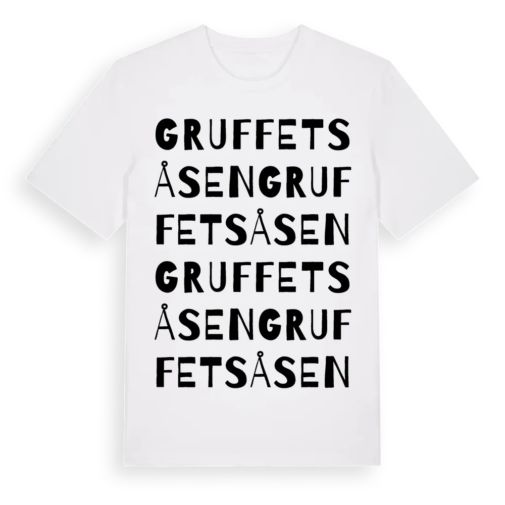 Gruffetsåsen ordlek t-shirt är inspirerad av byn Gruffetsåsen i Västmanlands län, Sverige. Tröjan är designad för dig som har en speciell koppling till platsen – oavsett om du bor här, har rötterna här eller bara älskar Gruffetsåsen.