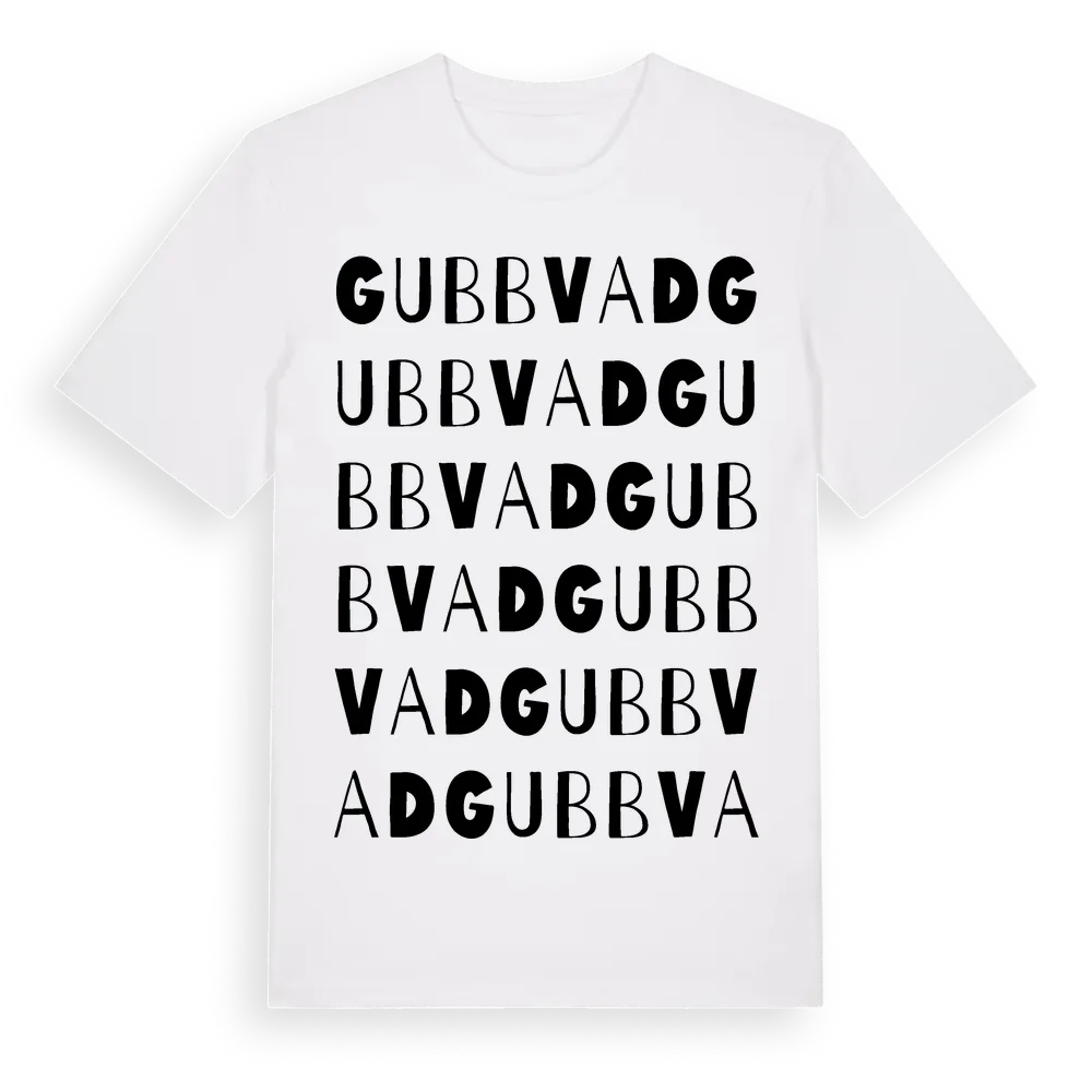 Gubbvad ordlek t-shirt är inspirerad av byn Gubbvad i Västmanlands län, Sverige. Tröjan är designad för dig som har en speciell koppling till platsen – oavsett om du bor här, har rötterna här eller bara älskar Gubbvad.