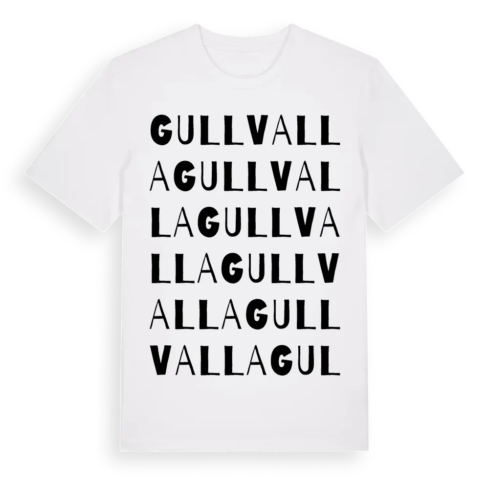 Gullvalla ordlek t-shirt är inspirerad av byn Gullvalla i Västmanlands län, Sverige. Tröjan är designad för dig som har en speciell koppling till platsen – oavsett om du bor här, har rötterna här eller bara älskar Gullvalla.