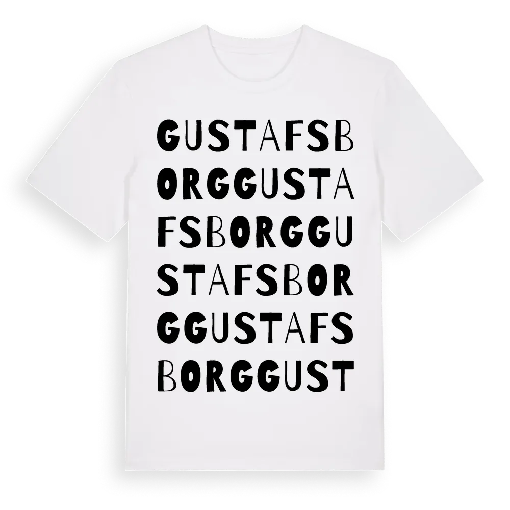Gustafsborg ordlek t-shirt är inspirerad av stadsdelen Gustafsborg i Västmanlands län, Sverige. Tröjan är designad för dig som har en speciell koppling till platsen – oavsett om du bor här, har rötterna här eller bara älskar Gustafsborg.