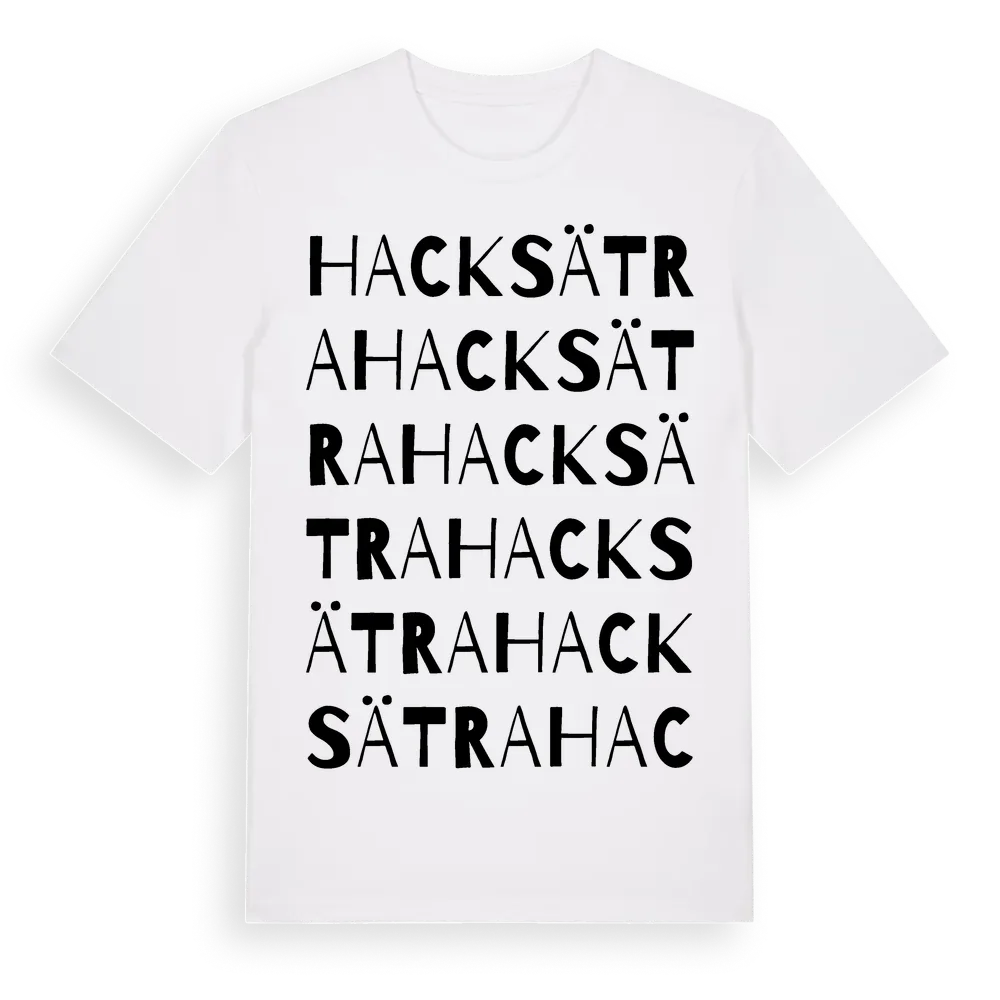 Hacksätra ordlek t-shirt är inspirerad av Hacksätra i Västmanlands län, Sverige. Tröjan är designad för dig som har en speciell koppling till platsen – oavsett om du bor här, har rötterna här eller bara älskar Hacksätra.