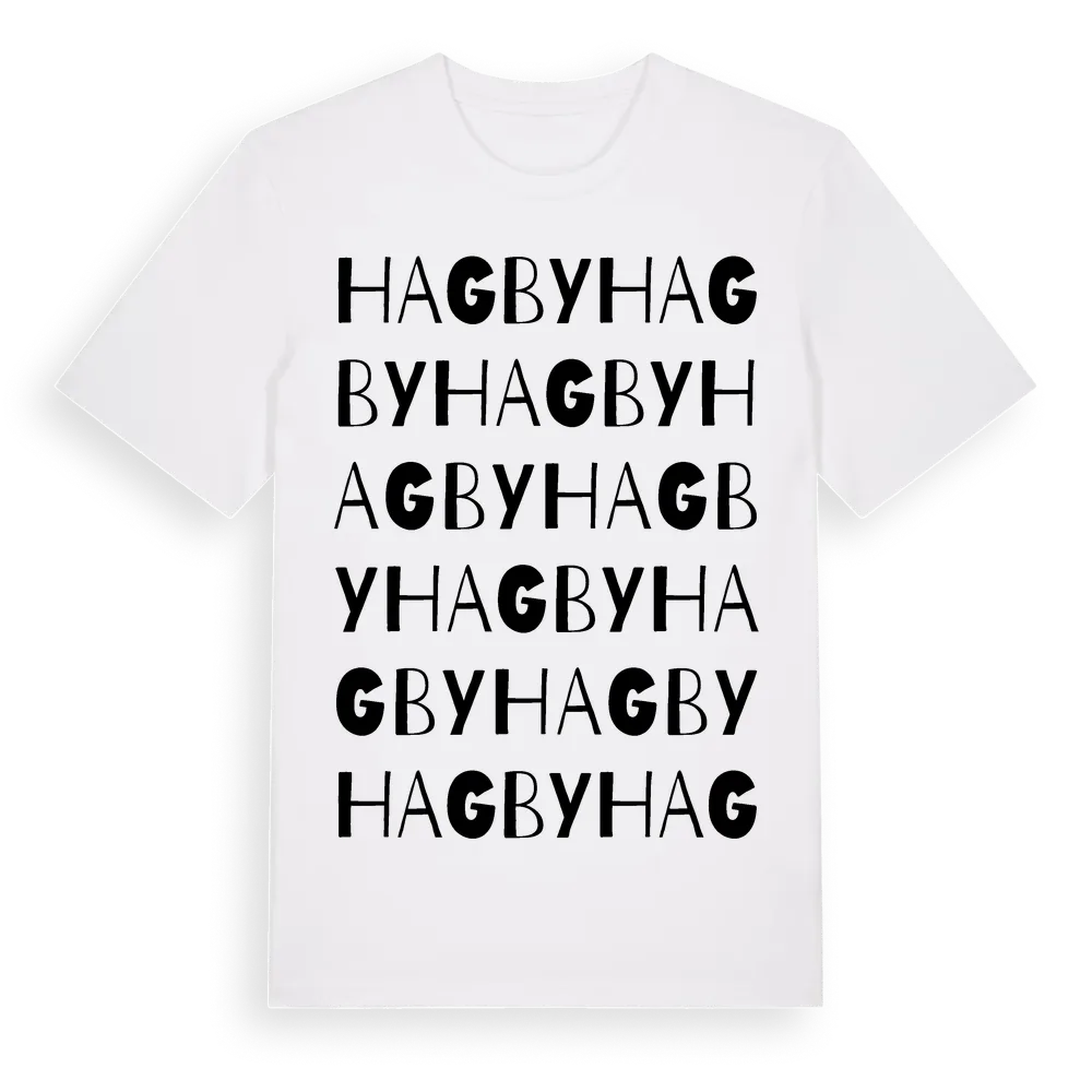 Hagby ordlek t-shirt är inspirerad av byn Hagby i Västmanlands län, Sverige. Tröjan är designad för dig som har en speciell koppling till platsen – oavsett om du bor här, har rötterna här eller bara älskar Hagby.