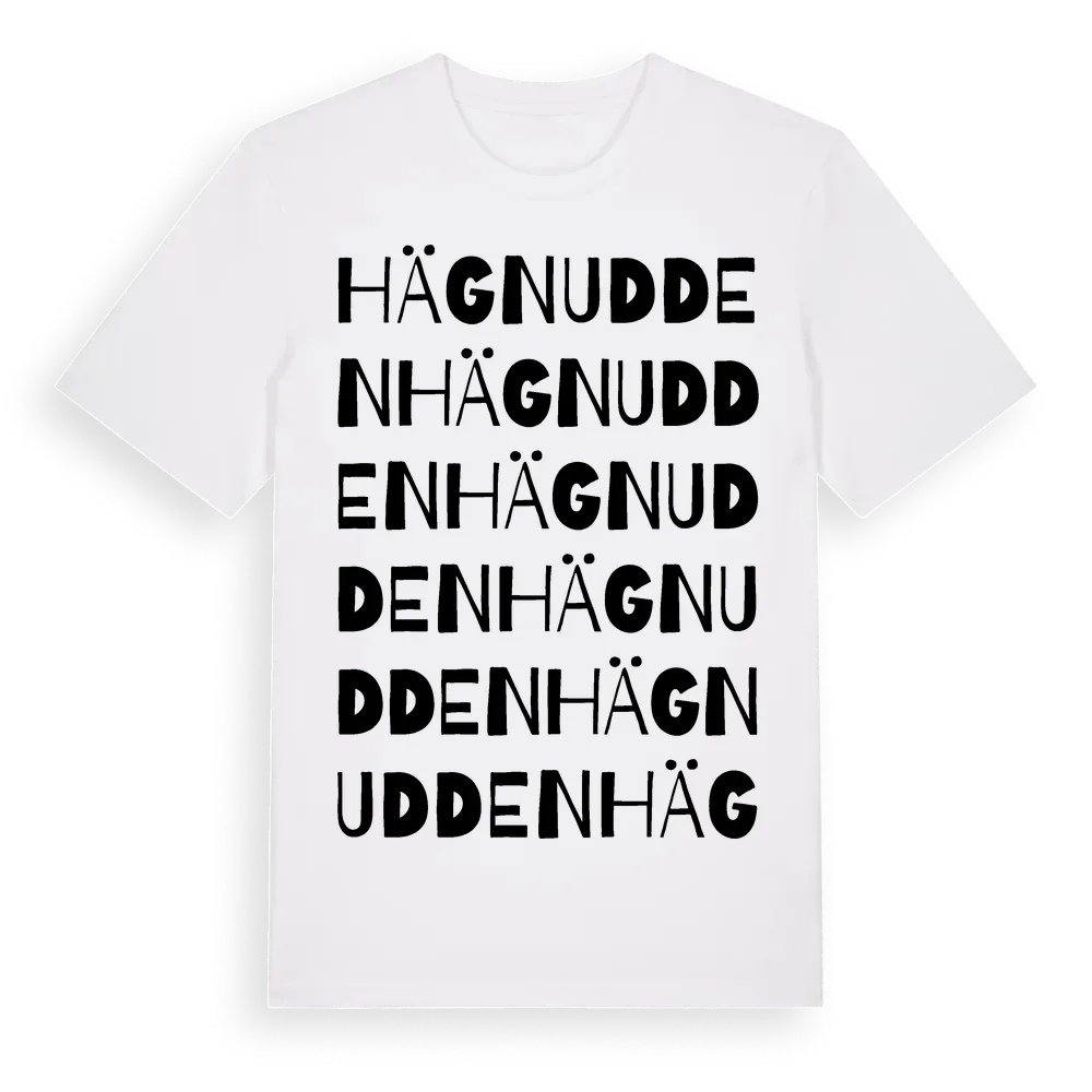 Hägnudden ordlek t-shirt är inspirerad av Hägnudden i Västmanlands län, Sverige. Tröjan är designad för dig som har en speciell koppling till platsen – oavsett om du bor här, har rötterna här eller bara älskar Hägnudden.