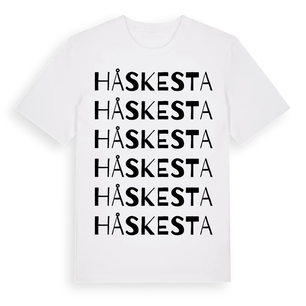 Håskesta ordlek t-shirt är inspirerad av byn Håskesta i Västmanlands län, Sverige. Tröjan är designad för dig som har en speciell koppling till platsen – oavsett om du bor här, har rötterna här eller bara älskar Håskesta.