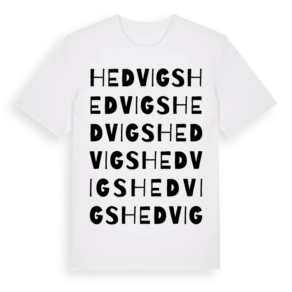 Hedvigs ordlek t-shirt är inspirerad av byn Hedvigs i Västmanlands län, Sverige. Tröjan är designad för dig som har en speciell koppling till platsen – oavsett om du bor här, har rötterna här eller bara älskar Hedvigs.