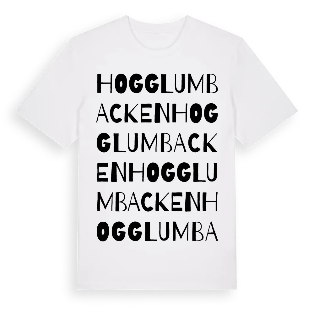 Hogglumbacken ordlek t-shirt är inspirerad av Hogglumbacken i Västmanlands län, Sverige. Tröjan är designad för dig som har en speciell koppling till platsen – oavsett om du bor här, har rötterna här eller bara älskar Hogglumbacken.