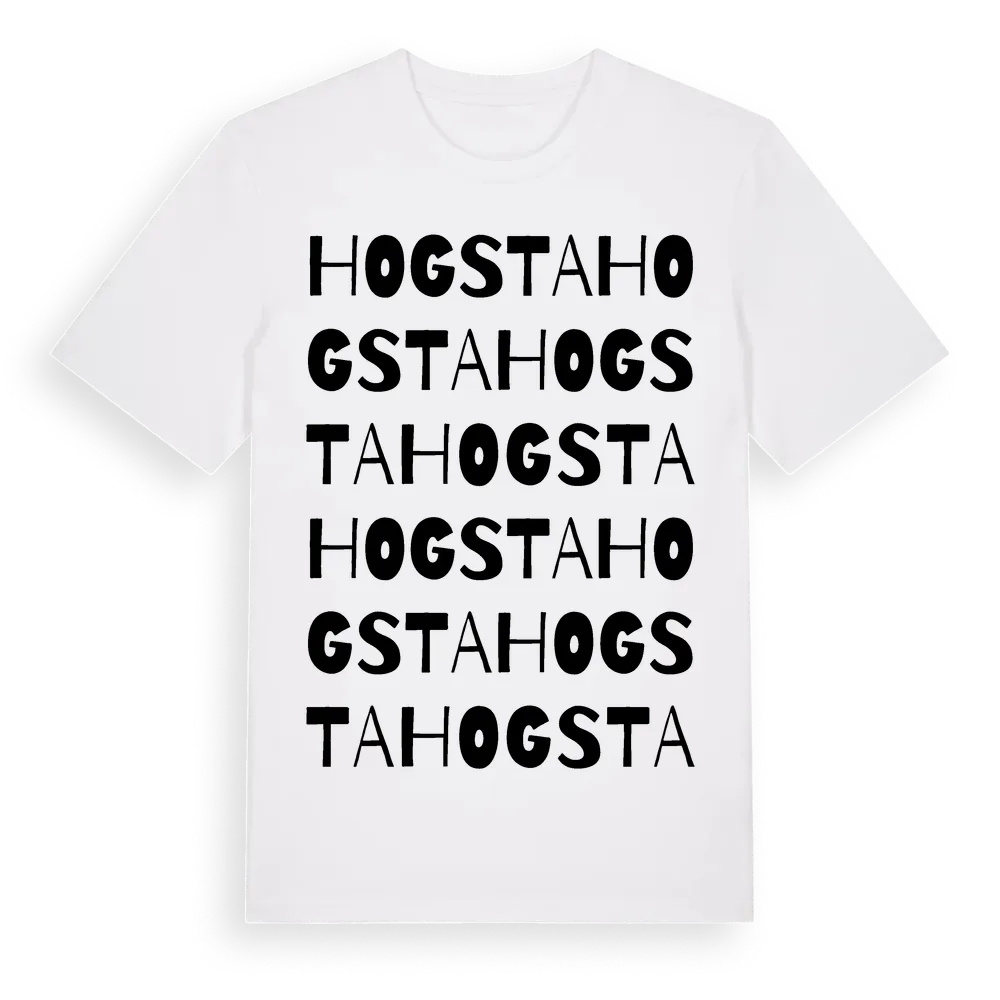 Hogsta ordlek t-shirt är inspirerad av byn Hogsta i Västmanlands län, Sverige. Tröjan är designad för dig som har en speciell koppling till platsen – oavsett om du bor här, har rötterna här eller bara älskar Hogsta.