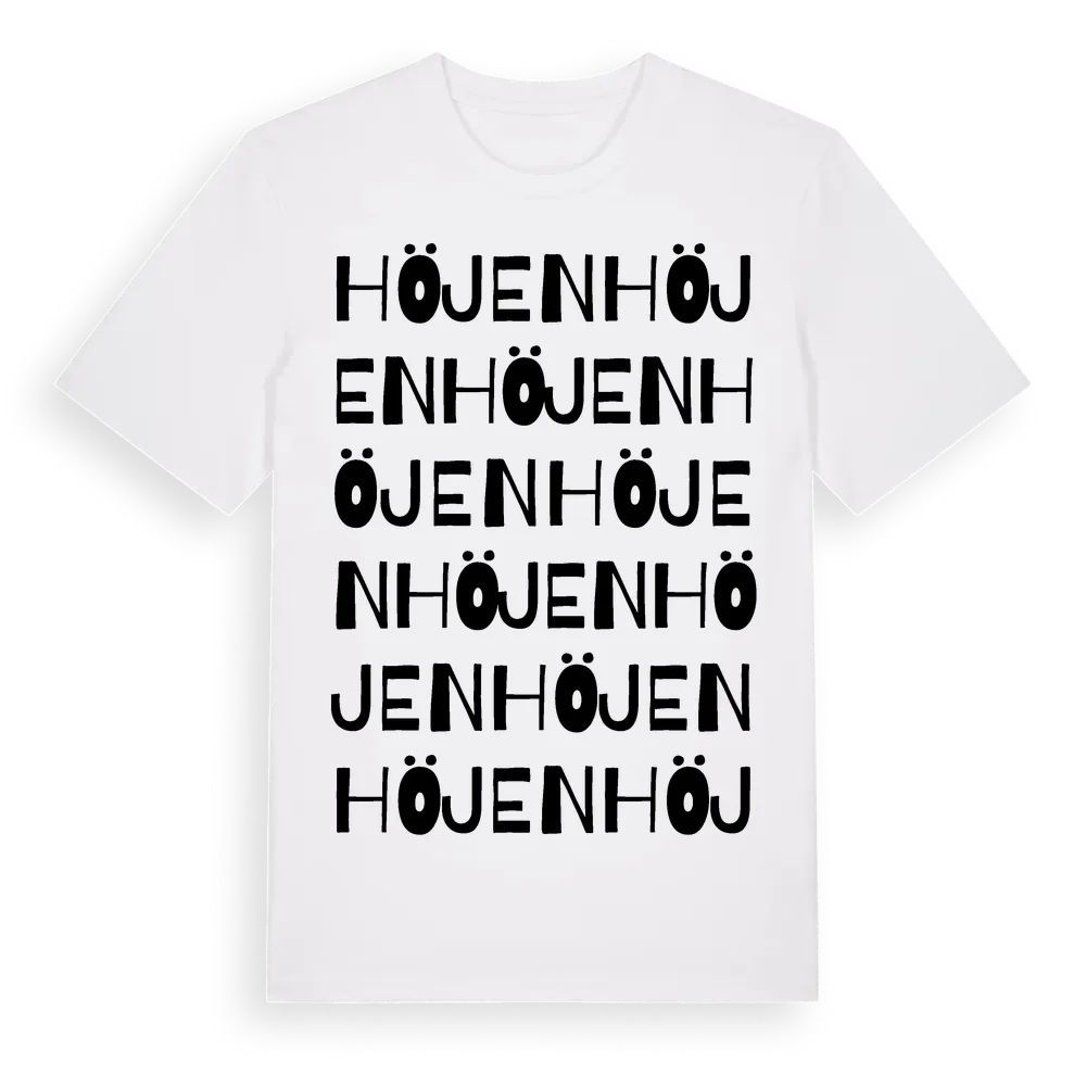 Höjen ordlek t-shirt är inspirerad av stadsdelen Höjen i Västmanlands län, Sverige. Tröjan är designad för dig som har en speciell koppling till platsen – oavsett om du bor här, har rötterna här eller bara älskar Höjen.