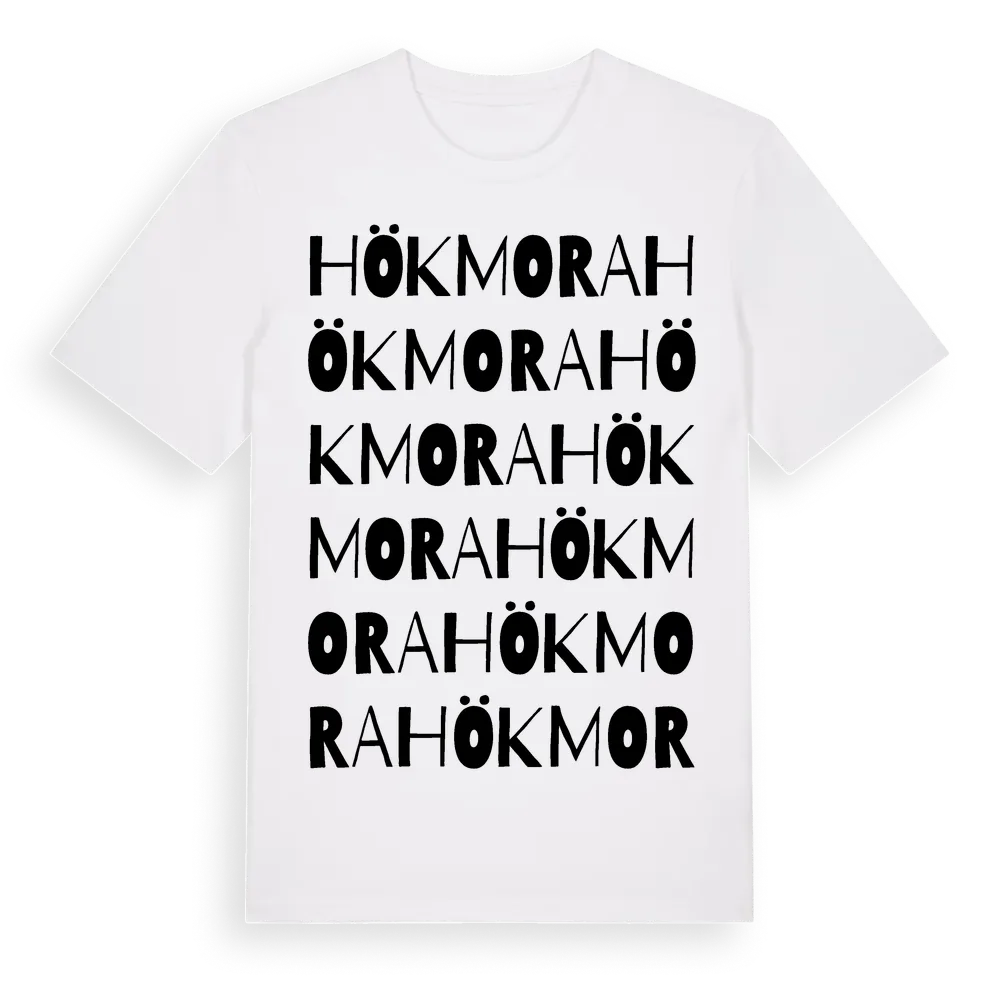 Hökmora ordlek t-shirt är inspirerad av byn Hökmora i Västmanlands län, Sverige. Tröjan är designad för dig som har en speciell koppling till platsen – oavsett om du bor här, har rötterna här eller bara älskar Hökmora.