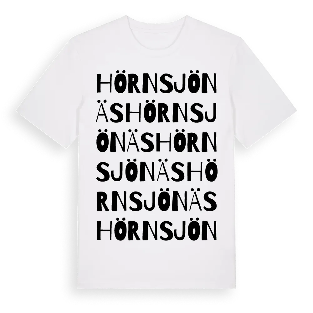 Hörnsjönäs ordlek t-shirt är inspirerad av Hörnsjönäs i Västmanlands län, Sverige. Tröjan är designad för dig som har en speciell koppling till platsen – oavsett om du bor här, har rötterna här eller bara älskar Hörnsjönäs.