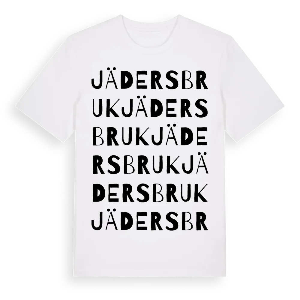 Jädersbruk ordlek t-shirt är inspirerad av Jädersbruk i Västmanlands län, Sverige. Tröjan är designad för dig som har en speciell koppling till platsen – oavsett om du bor här, har rötterna här eller bara älskar Jädersbruk.