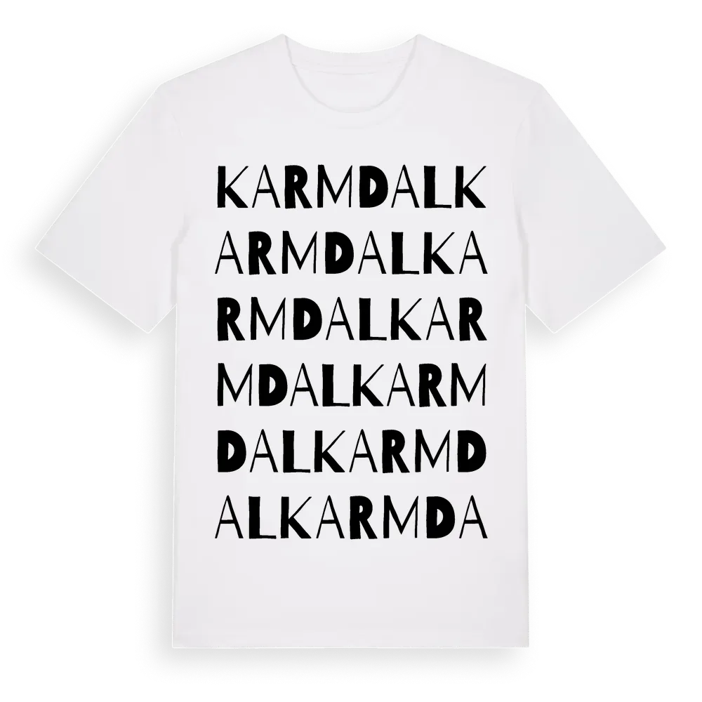 Karmdal ordlek t-shirt är inspirerad av Karmdal i Västmanlands län, Sverige. Tröjan är designad för dig som har en speciell koppling till platsen – oavsett om du bor här, har rötterna här eller bara älskar Karmdal.