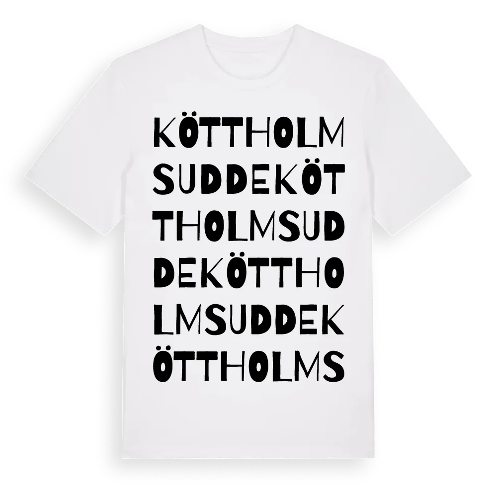 Köttholmsudde ordlek t-shirt är inspirerad av Köttholmsudde i Västmanlands län, Sverige. Tröjan är designad för dig som har en speciell koppling till platsen – oavsett om du bor här, har rötterna här eller bara älskar Köttholmsudde.