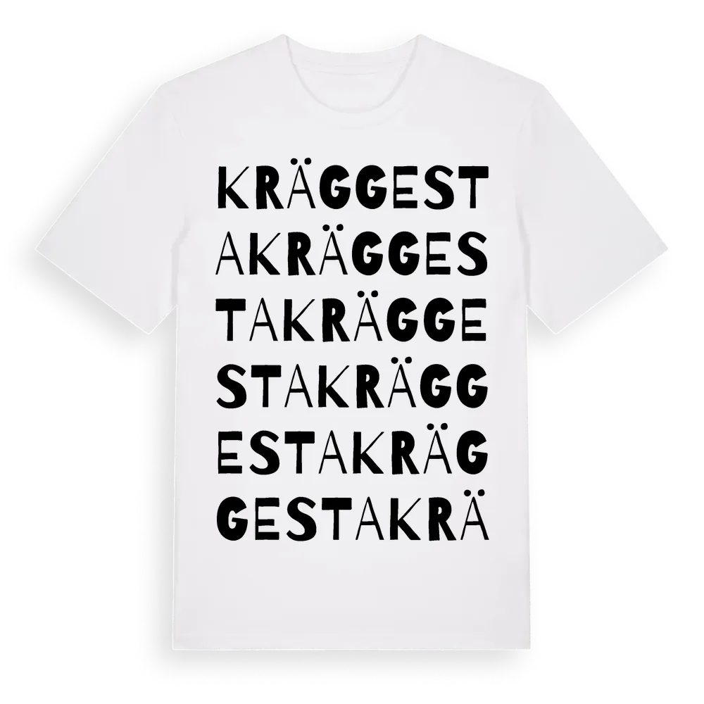 Kräggesta ordlek t-shirt är inspirerad av byn Kräggesta i Västmanlands län, Sverige. Tröjan är designad för dig som har en speciell koppling till platsen – oavsett om du bor här, har rötterna här eller bara älskar Kräggesta.