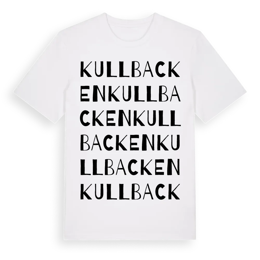 Kullbacken ordlek t-shirt är inspirerad av byn Kullbacken i Västmanlands län, Sverige. Tröjan är designad för dig som har en speciell koppling till platsen – oavsett om du bor här, har rötterna här eller bara älskar Kullbacken.