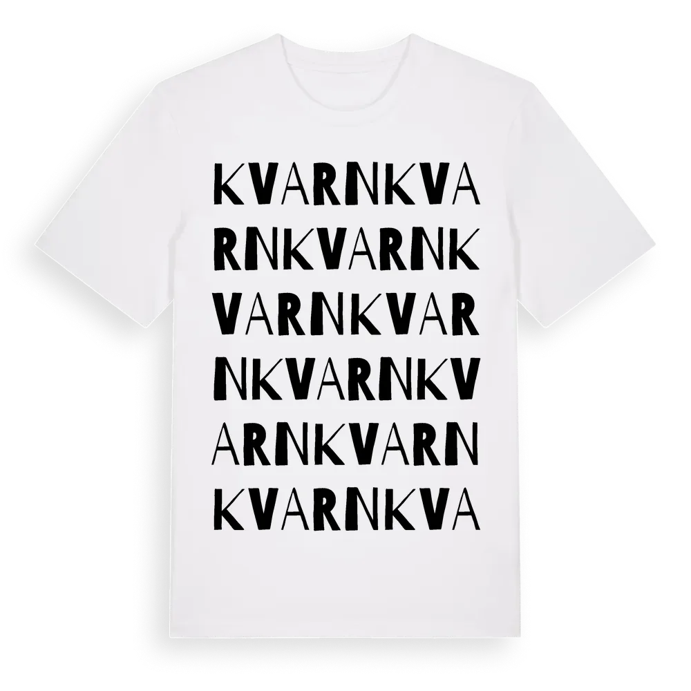 Kvarn ordlek t-shirt är inspirerad av Kvarn i Västmanlands län, Sverige. Tröjan är designad för dig som har en speciell koppling till platsen – oavsett om du bor här, har rötterna här eller bara älskar Kvarn.