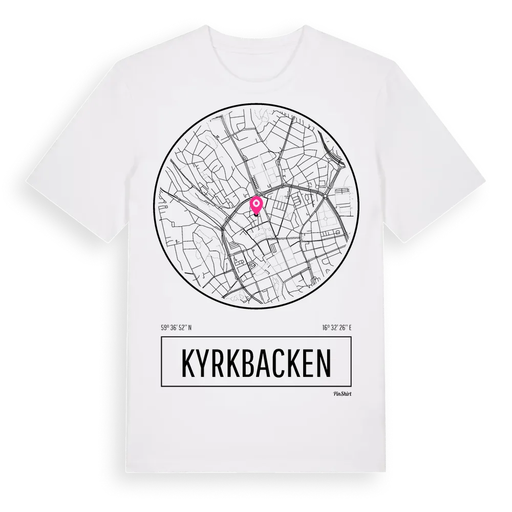 Kyrkbacken t-shirt är inspirerad av stadsdelen Kyrkbacken i Västmanlands län, Sverige. Tröjan är designad för dig som har en speciell koppling till platsen – oavsett om du bor här, har rötterna här eller bara älskar Kyrkbacken.