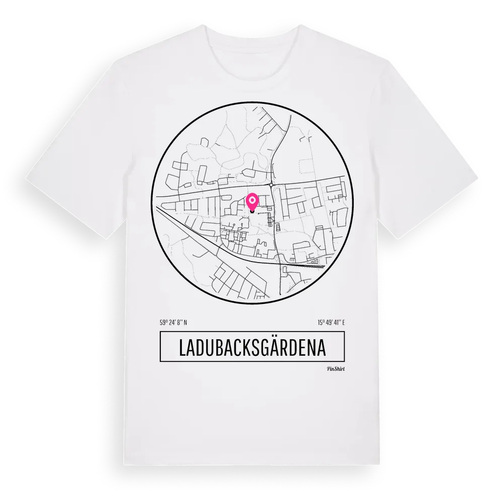 Ladubacksgärdena t-shirt är inspirerad av stadsdelen Ladubacksgärdena i Västmanlands län, Sverige. Tröjan är designad för dig som har en speciell koppling till platsen – oavsett om du bor här, har rötterna här eller bara älskar Ladubacksgärdena.