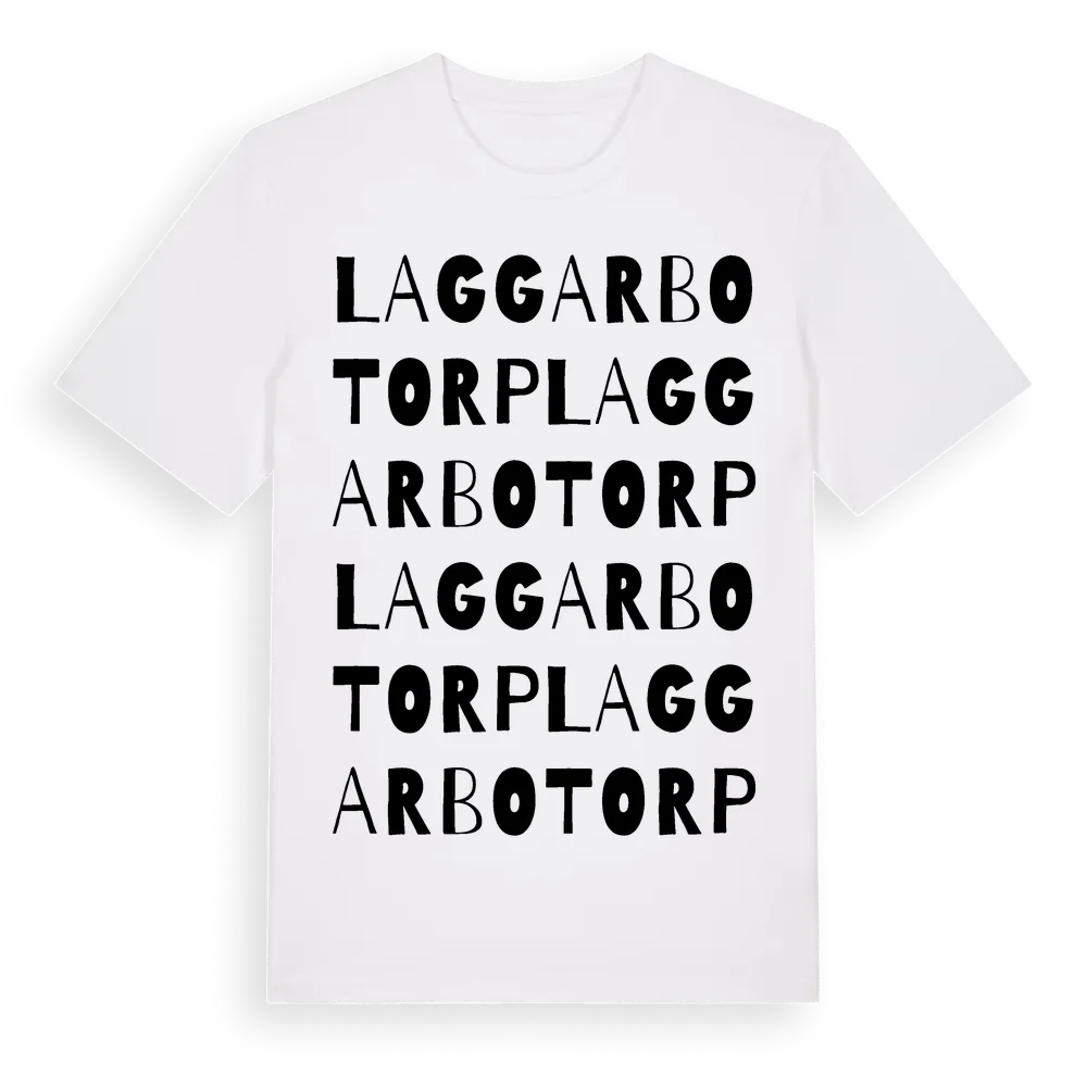 Laggarbotorp ordlek t-shirt är inspirerad av Laggarbotorp i Västmanlands län, Sverige. Tröjan är designad för dig som har en speciell koppling till platsen – oavsett om du bor här, har rötterna här eller bara älskar Laggarbotorp.