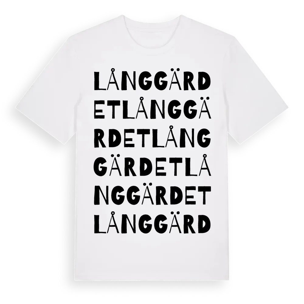 Långgärdet ordlek t-shirt är inspirerad av Långgärdet i Västmanlands län, Sverige. Tröjan är designad för dig som har en speciell koppling till platsen – oavsett om du bor här, har rötterna här eller bara älskar Långgärdet.