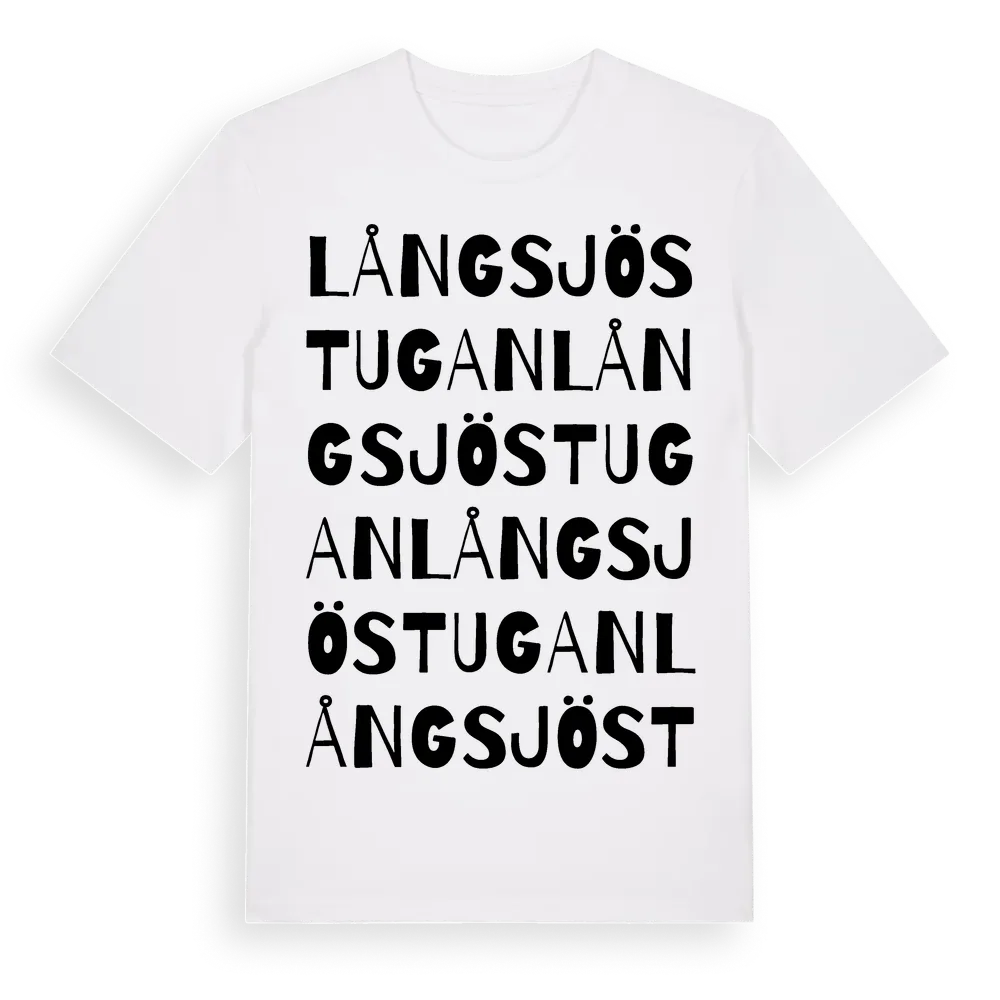 Långsjöstugan ordlek t-shirt är inspirerad av Långsjöstugan i Västmanlands län, Sverige. Tröjan är designad för dig som har en speciell koppling till platsen – oavsett om du bor här, har rötterna här eller bara älskar Långsjöstugan.