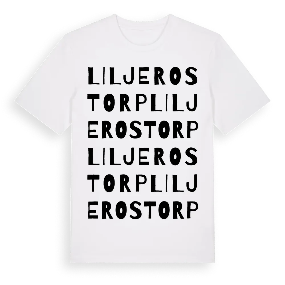 Liljerostorp ordlek t-shirt är inspirerad av Liljerostorp i Västmanlands län, Sverige. Tröjan är designad för dig som har en speciell koppling till platsen – oavsett om du bor här, har rötterna här eller bara älskar Liljerostorp.