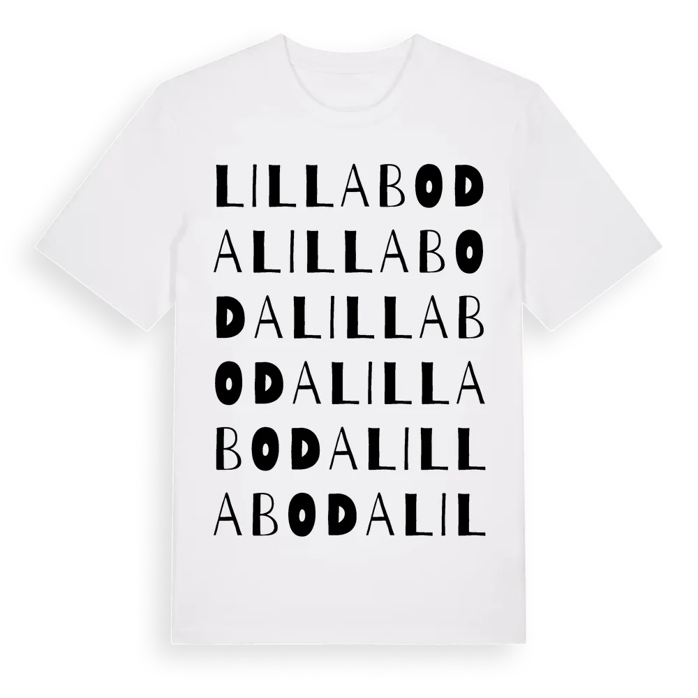 En ordlek byggd på Lilla Bodas namn. Subtilt och klurig – ett motiv som bara de som verkligen känner platsen fullt ut förstår. Premium bomull, unisex – från Lilla Boda i Västmanlands län.