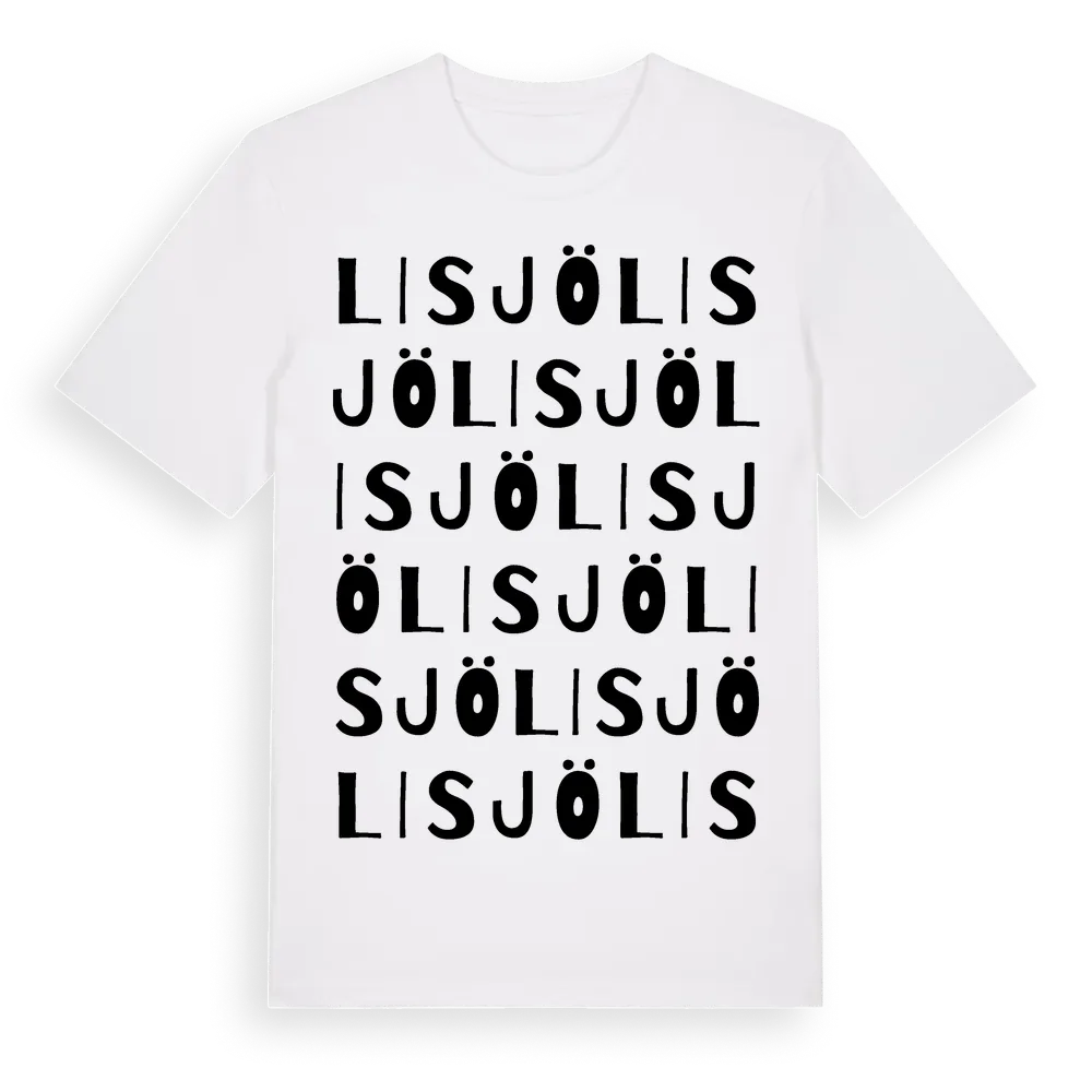 Lisjö ordlek t-shirt är inspirerad av byn Lisjö i Västmanlands län, Sverige. Tröjan är designad för dig som har en speciell koppling till platsen – oavsett om du bor här, har rötterna här eller bara älskar Lisjö.