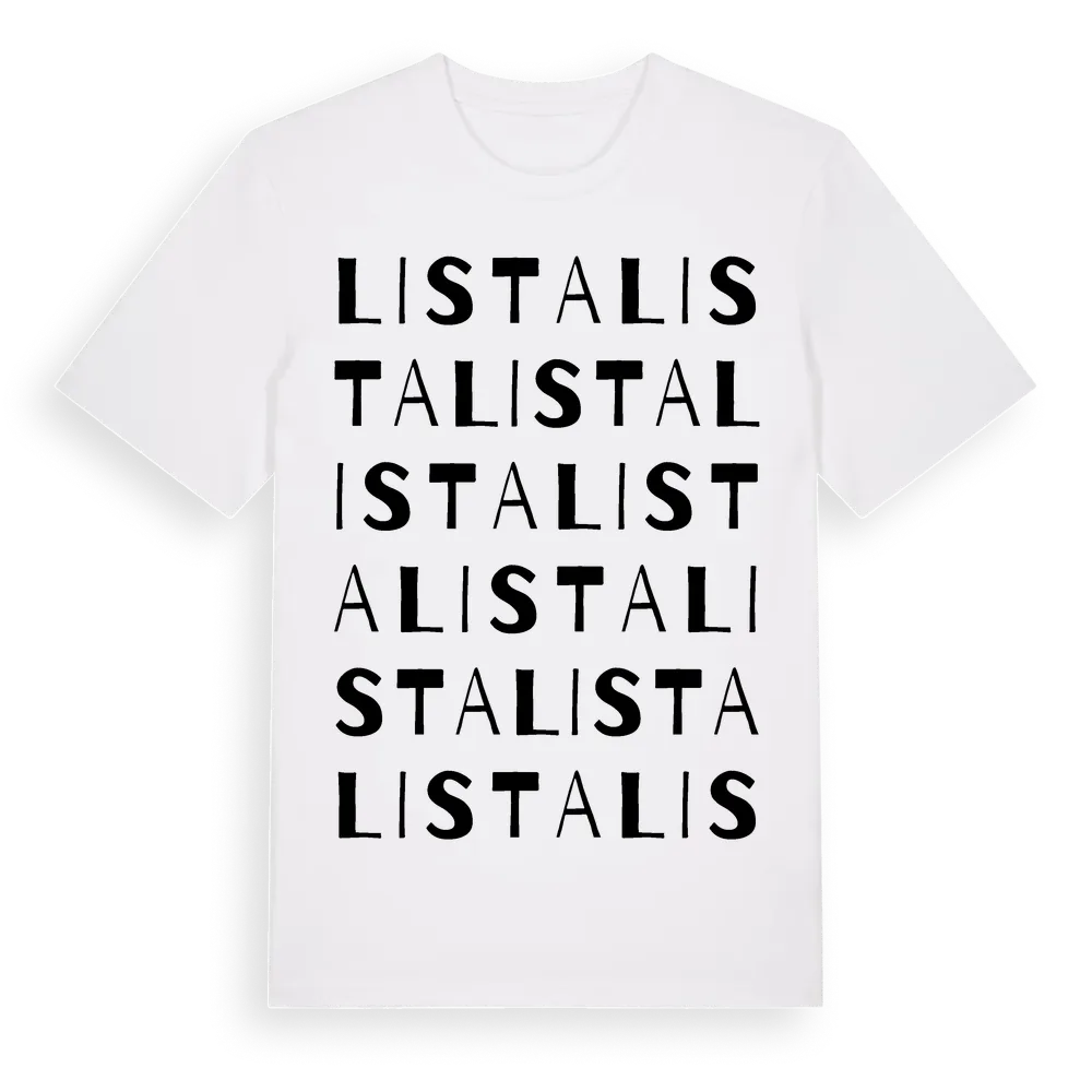 En ordlek byggd på Listas namn. Subtilt och klurig – ett motiv som bara de som verkligen känner platsen fullt ut förstår. Premium bomull, unisex – från Lista i Västmanlands län.
