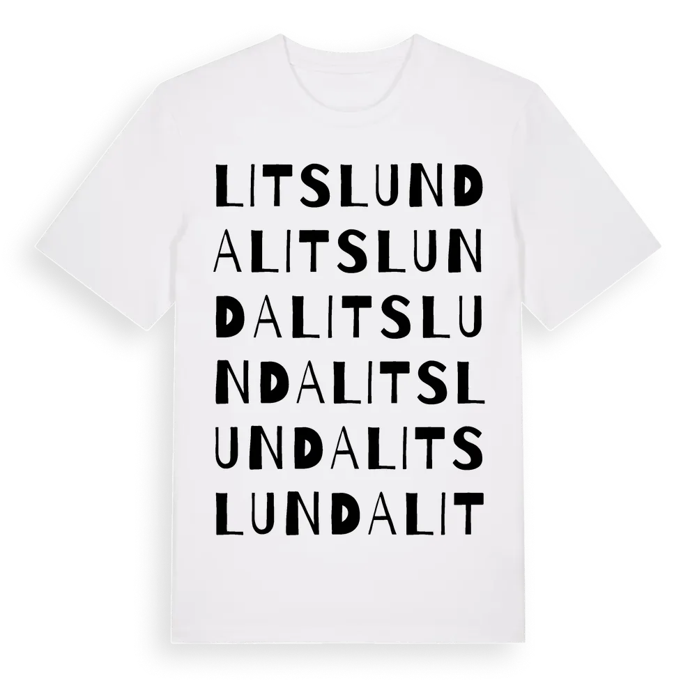 Litslunda ordlek t-shirt är inspirerad av byn Litslunda i Västmanlands län, Sverige. Tröjan är designad för dig som har en speciell koppling till platsen – oavsett om du bor här, har rötterna här eller bara älskar Litslunda.