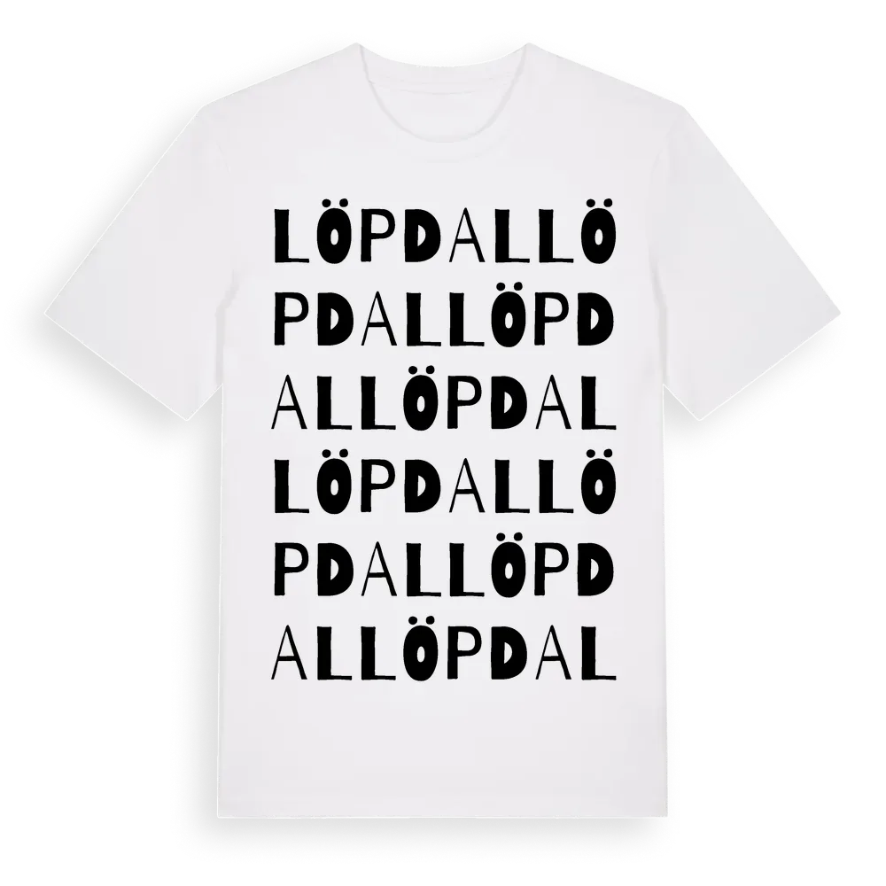 Löpdal ordlek t-shirt är inspirerad av byn Löpdal i Västmanlands län, Sverige. Tröjan är designad för dig som har en speciell koppling till platsen – oavsett om du bor här, har rötterna här eller bara älskar Löpdal.