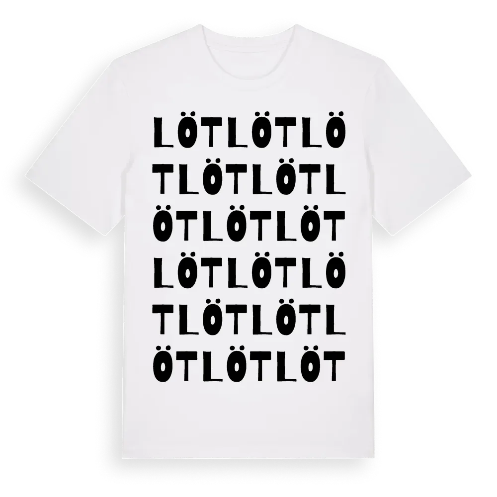 Löt ordlek t-shirt är inspirerad av byn Löt i Västmanlands län, Sverige. Tröjan är designad för dig som har en speciell koppling till platsen – oavsett om du bor här, har rötterna här eller bara älskar Löt.