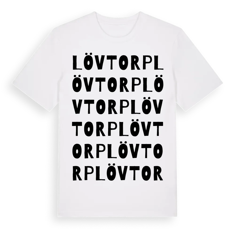 Lövtorp ordlek t-shirt är inspirerad av Lövtorp i Västmanlands län, Sverige. Tröjan är designad för dig som har en speciell koppling till platsen – oavsett om du bor här, har rötterna här eller bara älskar Lövtorp.
