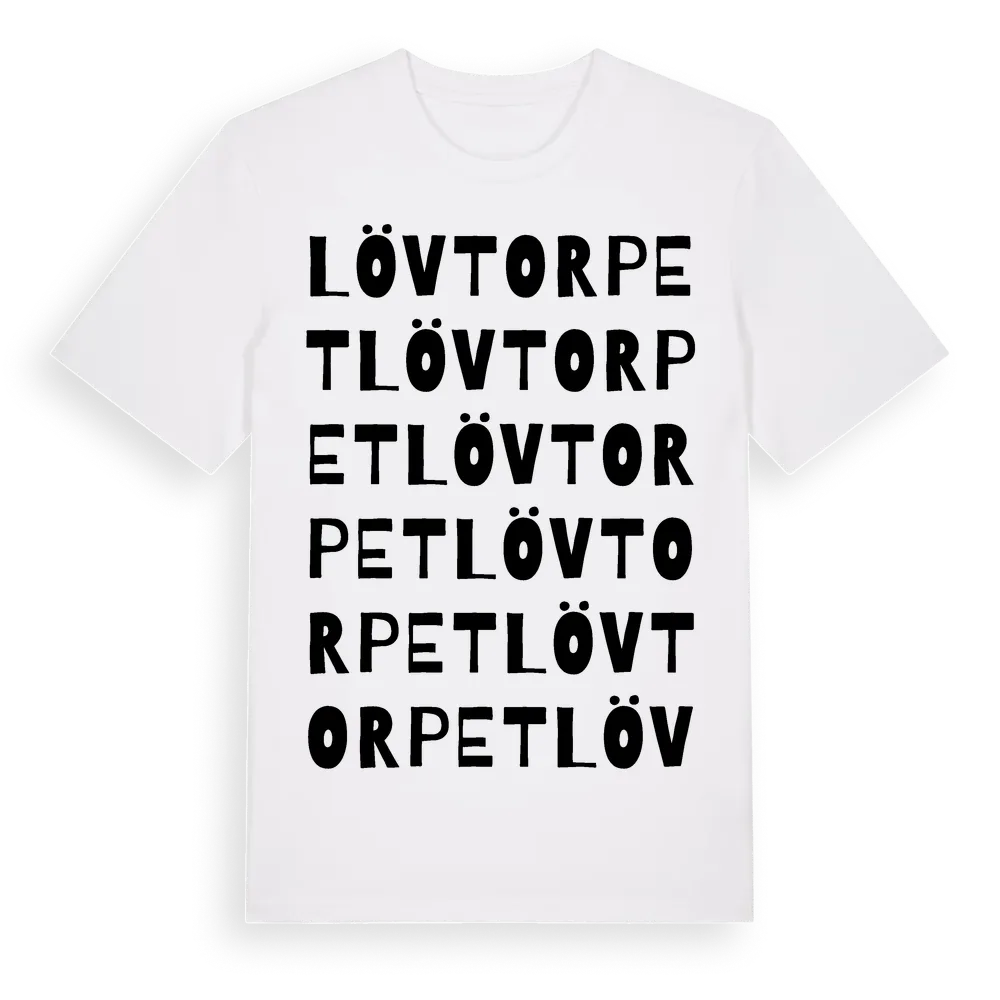 Lövtorpet ordlek t-shirt är inspirerad av Lövtorpet i Västmanlands län, Sverige. Tröjan är designad för dig som har en speciell koppling till platsen – oavsett om du bor här, har rötterna här eller bara älskar Lövtorpet.
