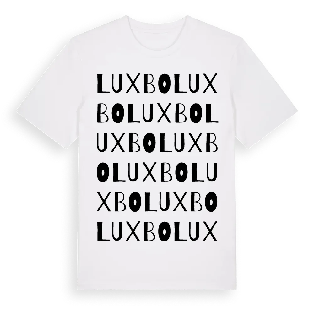 Luxbo ordlek t-shirt är inspirerad av Luxbo i Västmanlands län, Sverige. Tröjan är designad för dig som har en speciell koppling till platsen – oavsett om du bor här, har rötterna här eller bara älskar Luxbo.