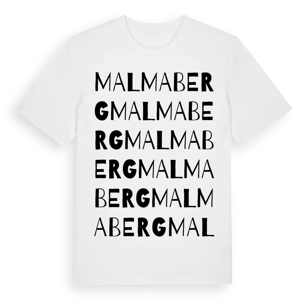 Malmaberg ordlek t-shirt är inspirerad av stadsdelen Malmaberg i Västmanlands län, Sverige. Tröjan är designad för dig som har en speciell koppling till platsen – oavsett om du bor här, har rötterna här eller bara älskar Malmaberg.