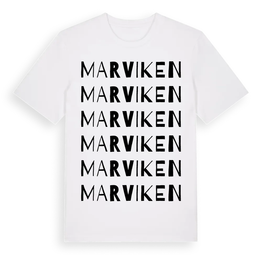 Marviken ordlek t-shirt är inspirerad av byn Marviken i Västmanlands län, Sverige. Tröjan är designad för dig som har en speciell koppling till platsen – oavsett om du bor här, har rötterna här eller bara älskar Marviken.