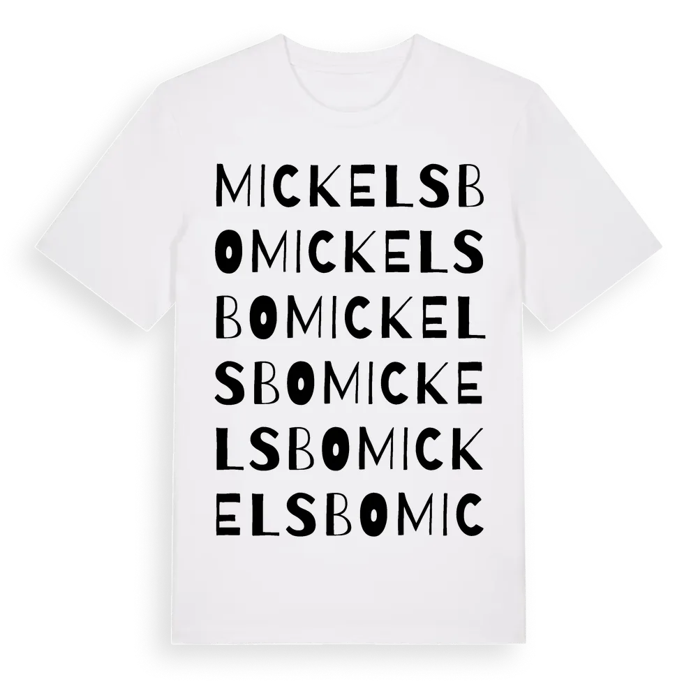 Mickelsbo ordlek t-shirt är inspirerad av byn Mickelsbo i Västmanlands län, Sverige. Tröjan är designad för dig som har en speciell koppling till platsen – oavsett om du bor här, har rötterna här eller bara älskar Mickelsbo.
