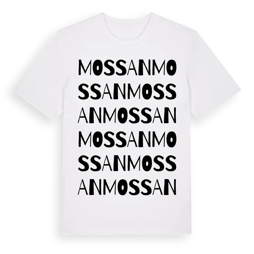 Mossan ordlek t-shirt är inspirerad av Mossan i Västmanlands län, Sverige. Tröjan är designad för dig som har en speciell koppling till platsen – oavsett om du bor här, har rötterna här eller bara älskar Mossan.