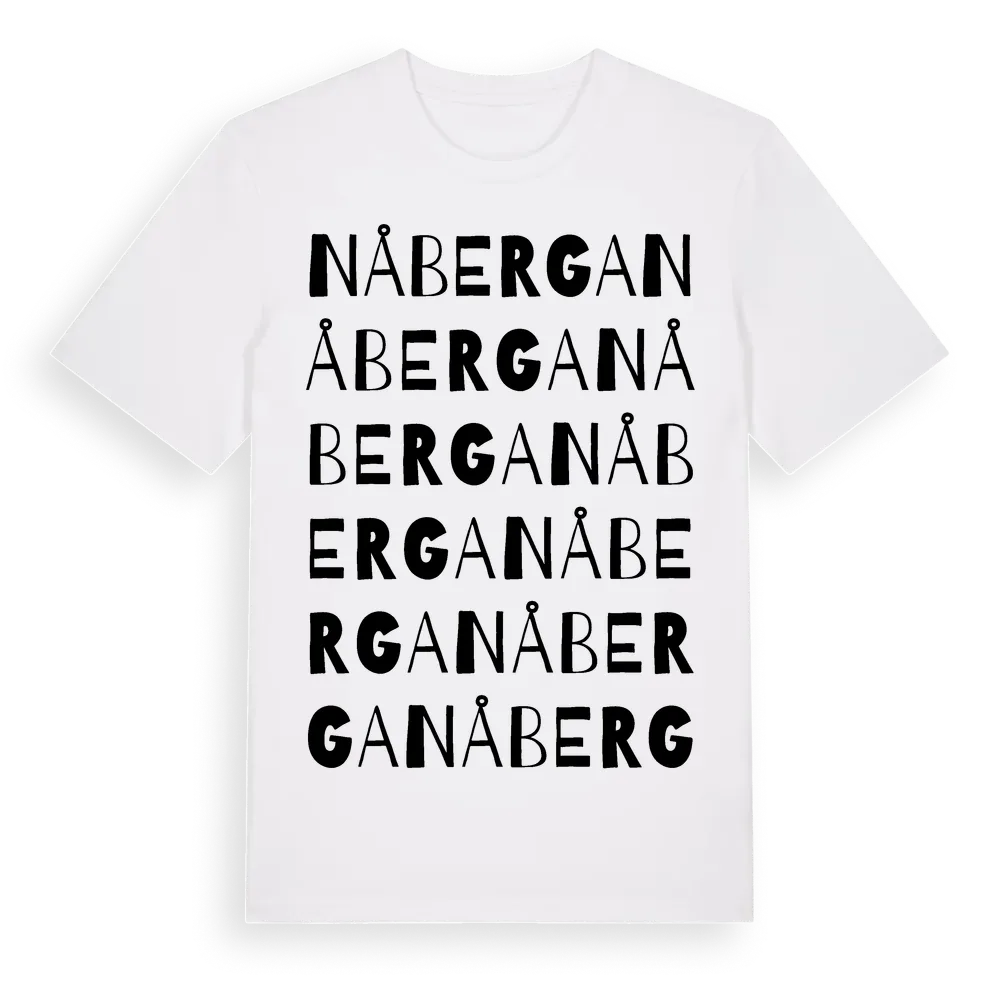 Nåberga ordlek t-shirt är inspirerad av byn Nåberga i Västmanlands län, Sverige. Tröjan är designad för dig som har en speciell koppling till platsen – oavsett om du bor här, har rötterna här eller bara älskar Nåberga.