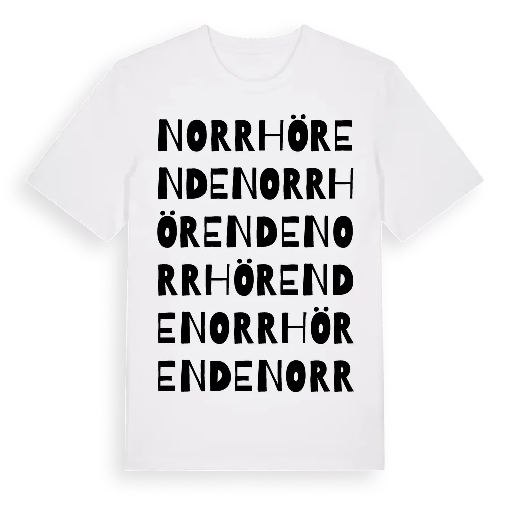 Norrhörende ordlek t-shirt är inspirerad av byn Norrhörende i Västmanlands län, Sverige. Tröjan är designad för dig som har en speciell koppling till platsen – oavsett om du bor här, har rötterna här eller bara älskar Norrhörende.