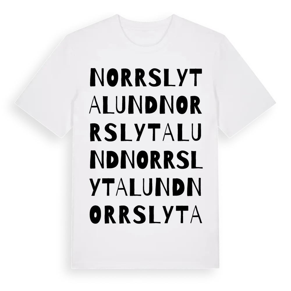 Norrslytalund ordlek t-shirt är inspirerad av Norrslytalund i Västmanlands län, Sverige. Tröjan är designad för dig som har en speciell koppling till platsen – oavsett om du bor här, har rötterna här eller bara älskar Norrslytalund.