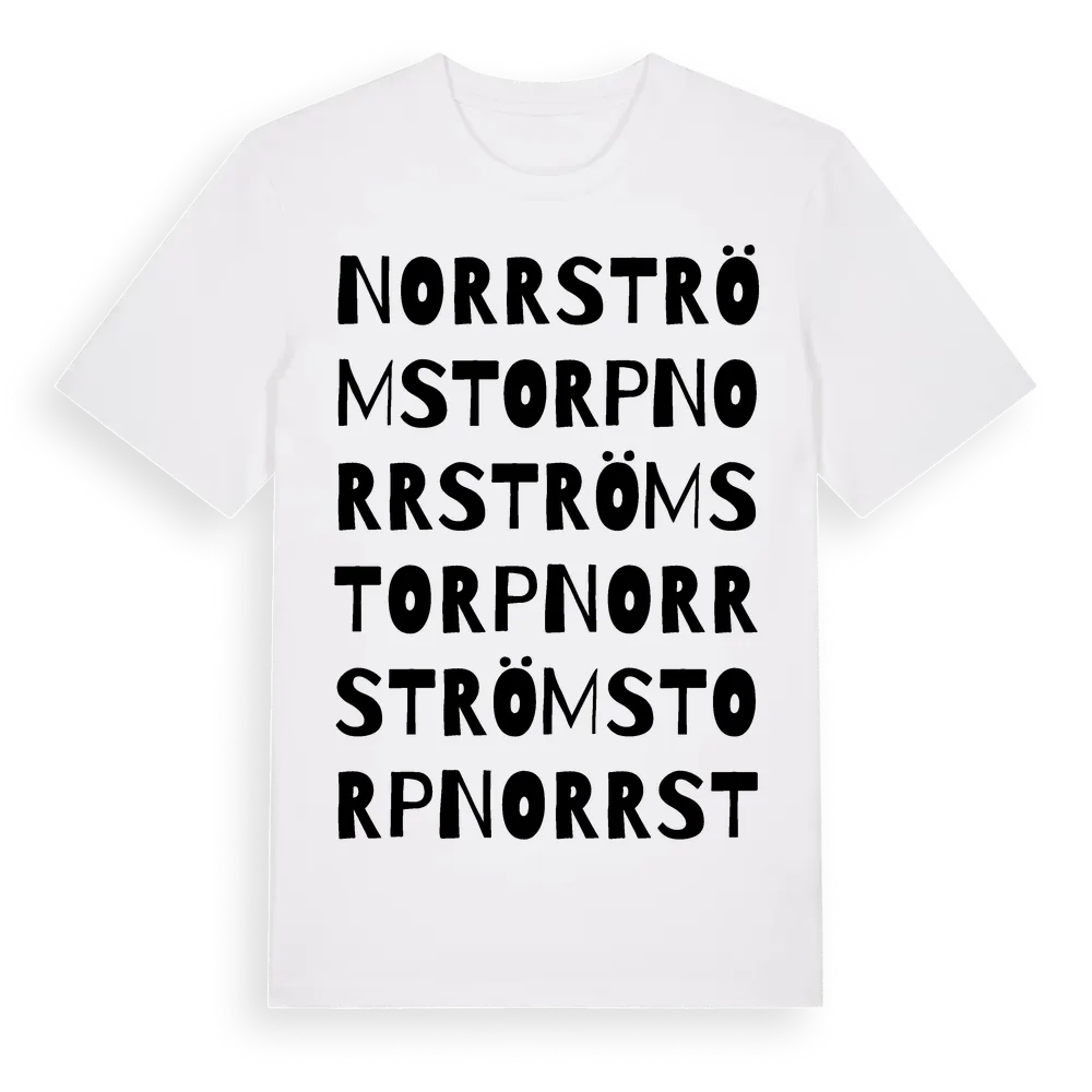 Norrströmstorp ordlek t-shirt är inspirerad av Norrströmstorp i Västmanlands län, Sverige. Tröjan är designad för dig som har en speciell koppling till platsen – oavsett om du bor här, har rötterna här eller bara älskar Norrströmstorp.