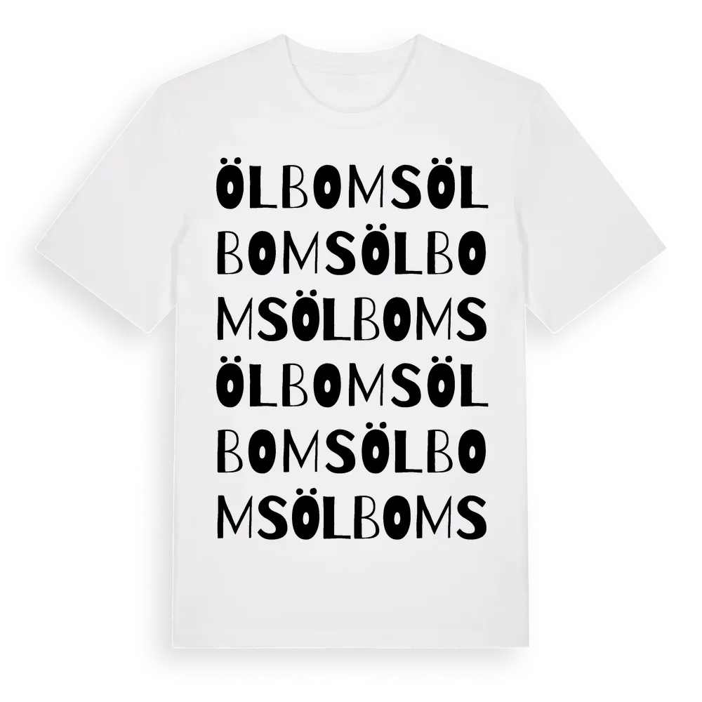 Ölboms ordlek t-shirt är inspirerad av byn Ölboms i Västmanlands län, Sverige. Tröjan är designad för dig som har en speciell koppling till platsen – oavsett om du bor här, har rötterna här eller bara älskar Ölboms.