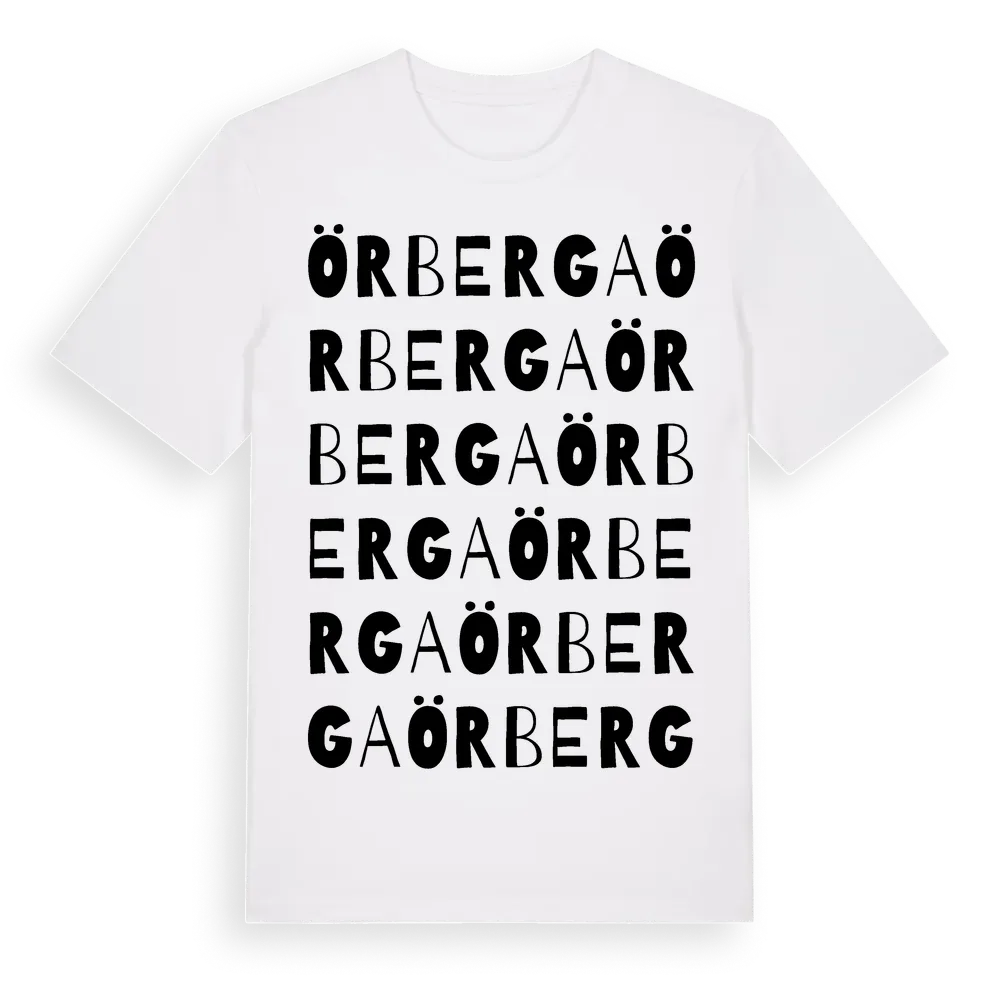 Örberga ordlek t-shirt är inspirerad av byn Örberga i Västmanlands län, Sverige. Tröjan är designad för dig som har en speciell koppling till platsen – oavsett om du bor här, har rötterna här eller bara älskar Örberga.