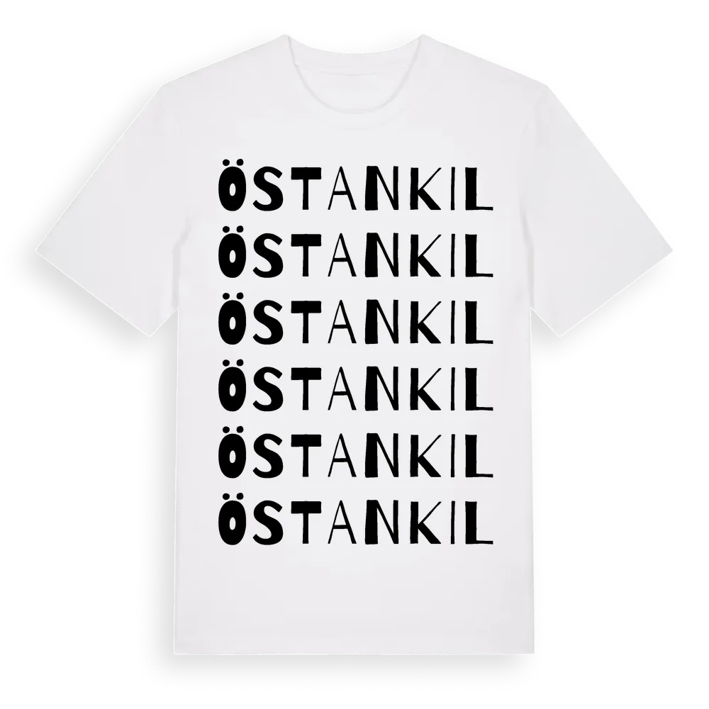 Östankil ordlek t-shirt är inspirerad av byn Östankil i Västmanlands län, Sverige. Tröjan är designad för dig som har en speciell koppling till platsen – oavsett om du bor här, har rötterna här eller bara älskar Östankil.