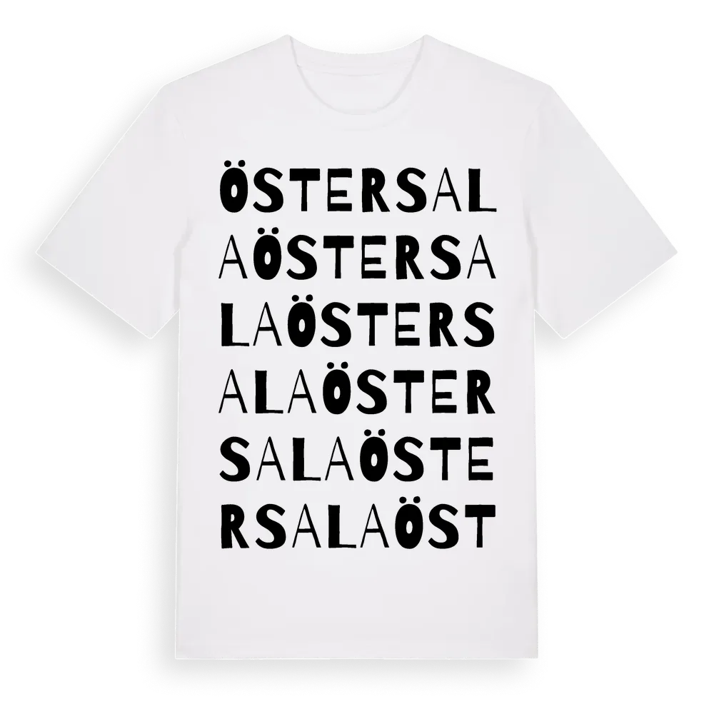 Östersala ordlek t-shirt är inspirerad av byn Östersala i Västmanlands län, Sverige. Tröjan är designad för dig som har en speciell koppling till platsen – oavsett om du bor här, har rötterna här eller bara älskar Östersala.