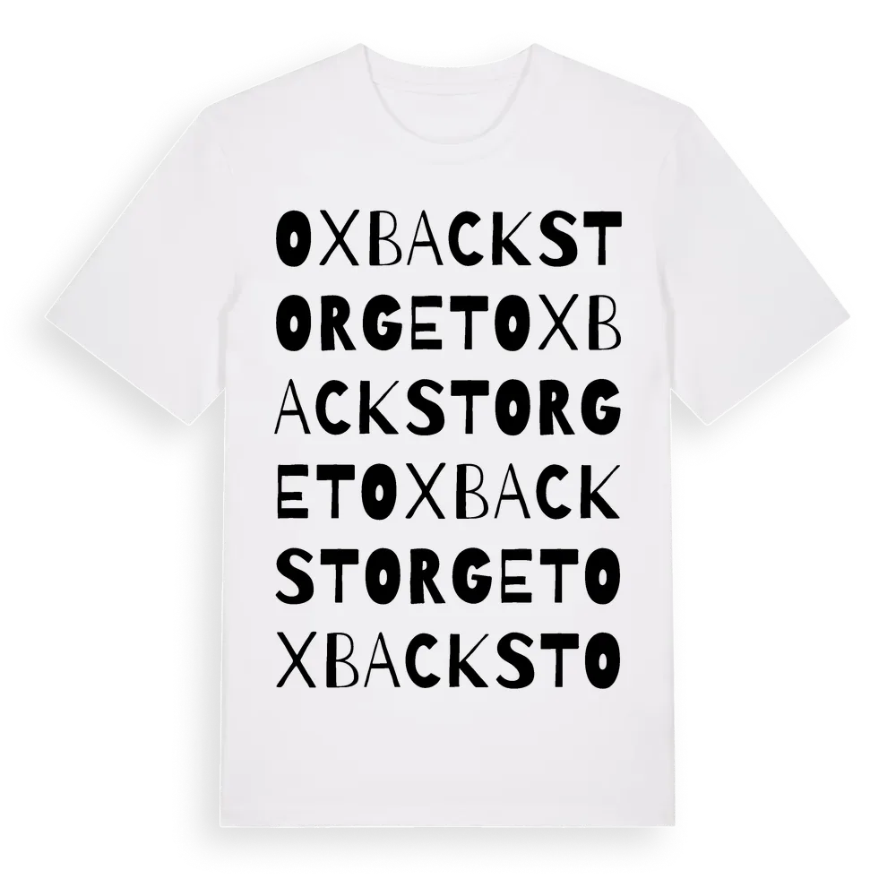 Oxbackstorget ordlek t-shirt är inspirerad av Oxbackstorget i Västmanlands län, Sverige. Tröjan är designad för dig som har en speciell koppling till platsen – oavsett om du bor här, har rötterna här eller bara älskar Oxbackstorget.