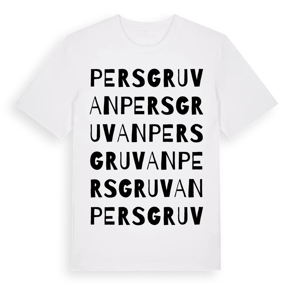 Persgruvan ordlek t-shirt är inspirerad av Persgruvan i Västmanlands län, Sverige. Tröjan är designad för dig som har en speciell koppling till platsen – oavsett om du bor här, har rötterna här eller bara älskar Persgruvan.
